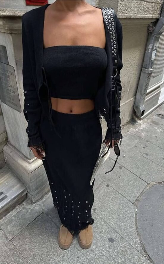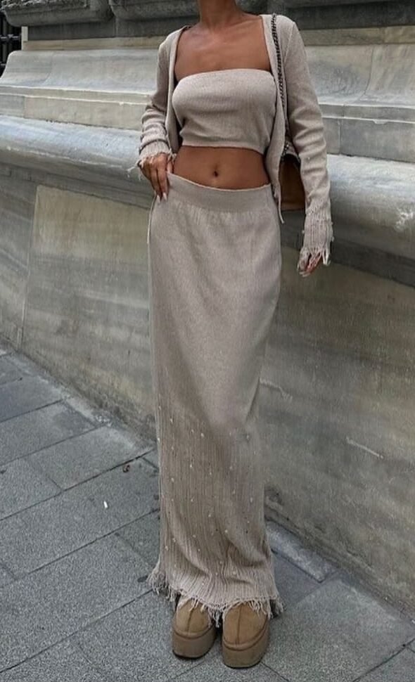 Be the first to review “Knit Crop Top & Maxi Skirt Three Piece Set”