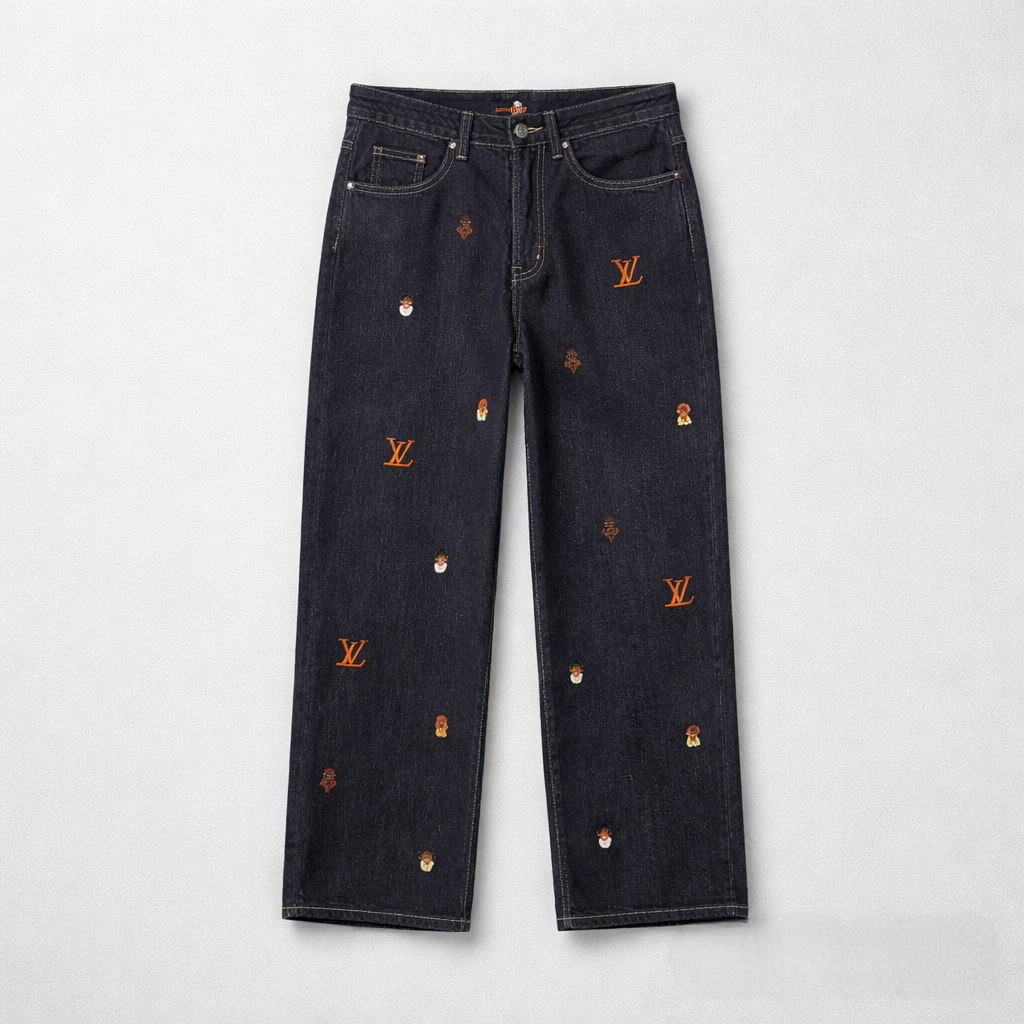 Louis Vuitton Premium Embroidered Dark Denim Jeans