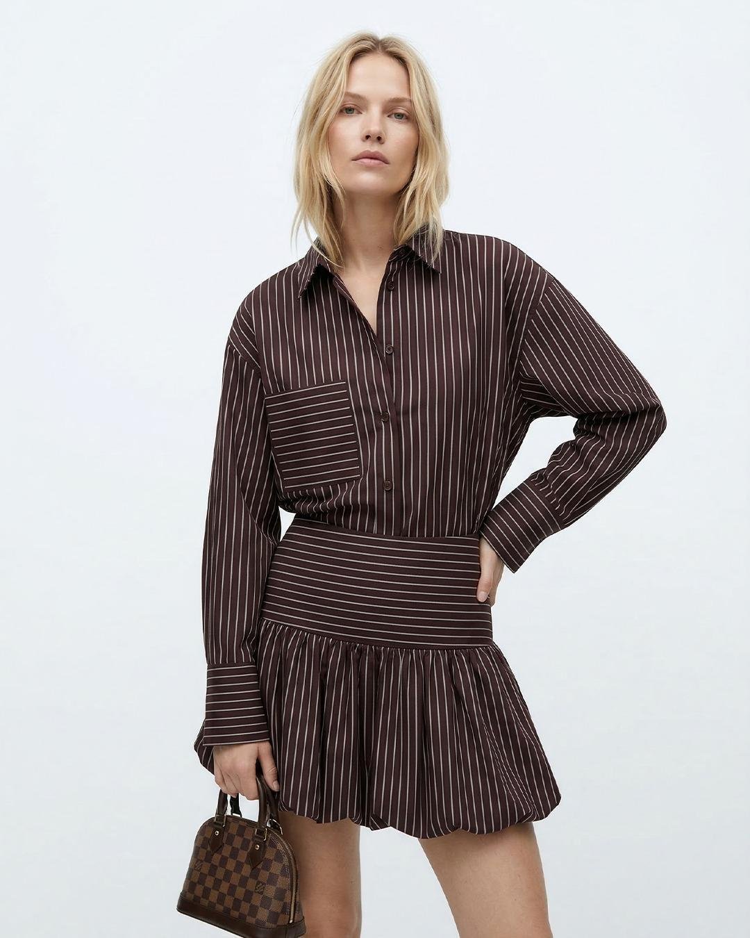 Fit: Relaxed shirt fit / High-waisted skirt with volume silhouette