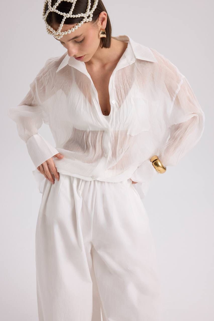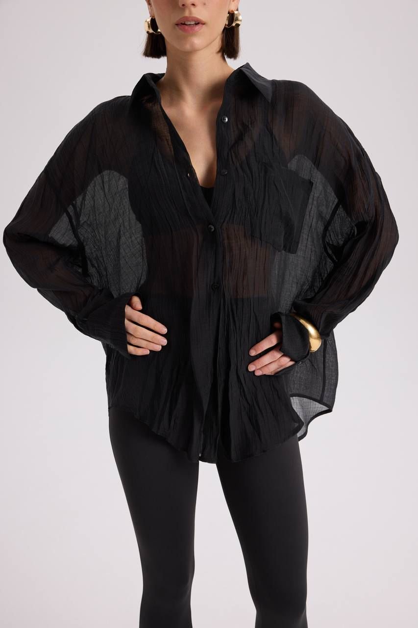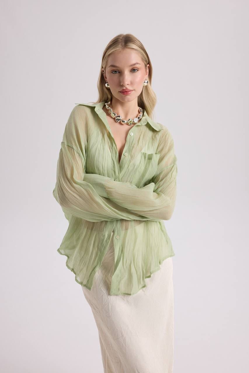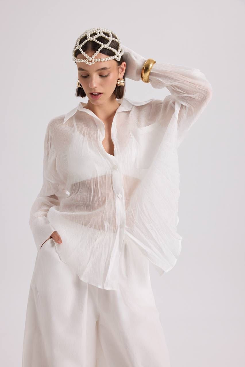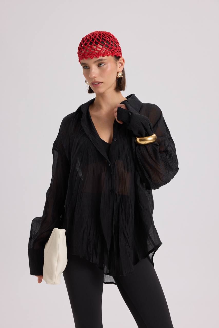Be the first to review “Sheer Crinkled Texture Shirt”