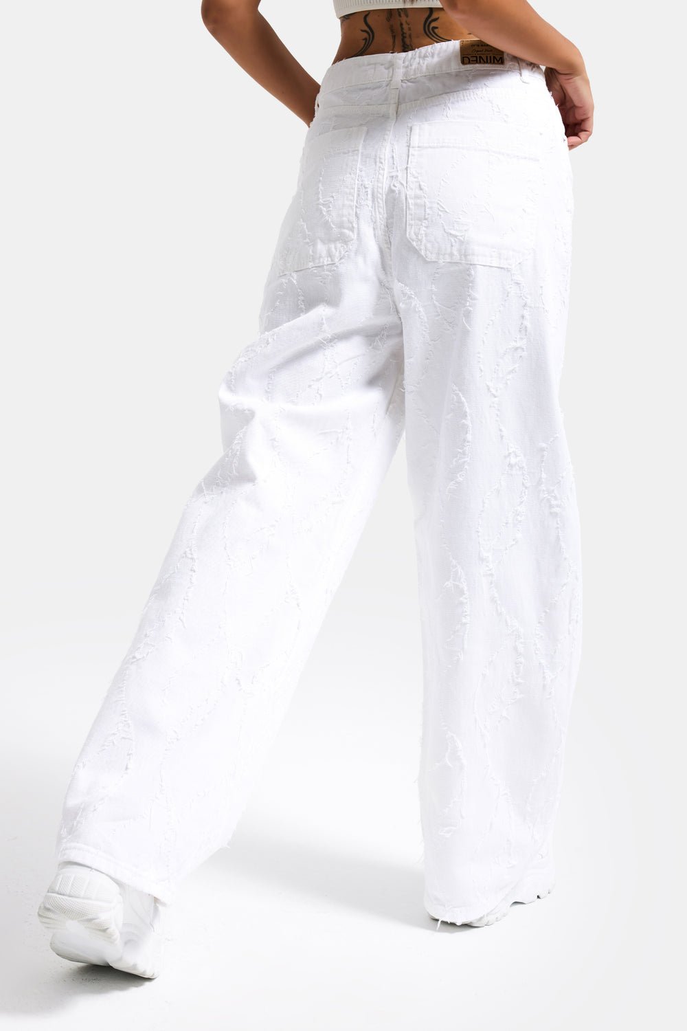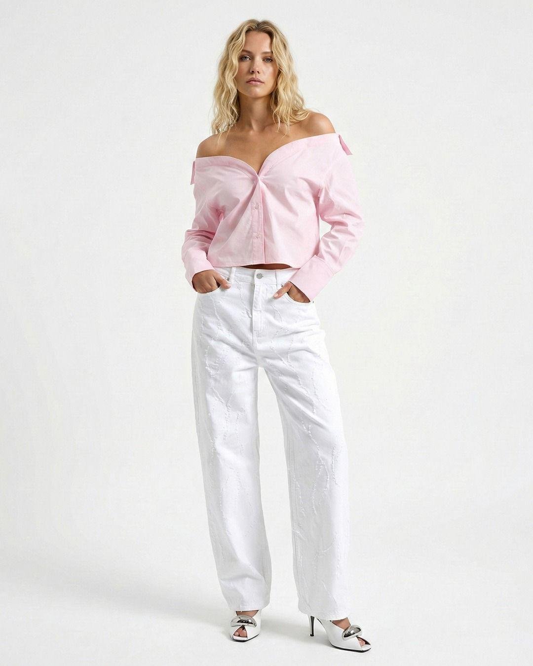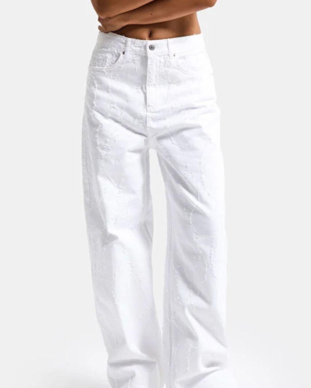 Wide-leg white denim pants designed for comfort and effortless style. Made from 100% cotton (no lycra) with a relaxed fit that creates a modern, elongated silhouette. Perfect for both casual and chic outfits.